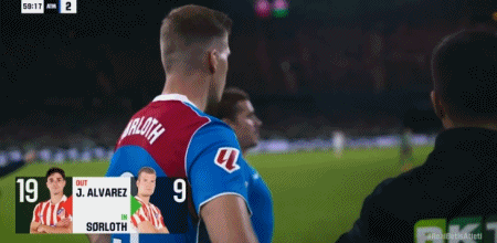 第60分钟,换人,格雷兹曼、瑟洛特替补登场,阿尔瓦雷斯、巴埃纳被换下
