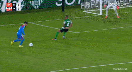 第45+1分钟,阿尔瓦雷斯助攻,巴埃纳左路兜射破门,马竞2-0贝蒂斯
