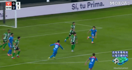 第3分钟,小西蒙尼弧顶凌空抽射破门先拔头筹,马竞1-0贝蒂斯
