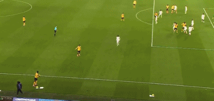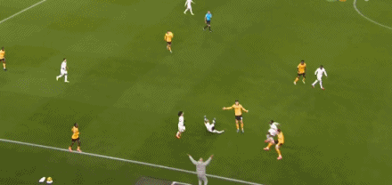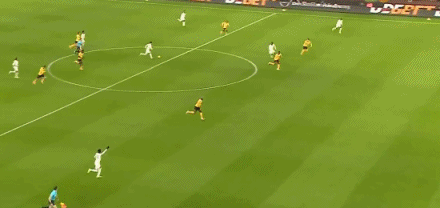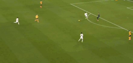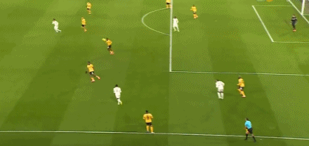 第89分钟,天外飞仙!吉滕斯凌空远射中柱后弹进球门,狼队2-4切尔西